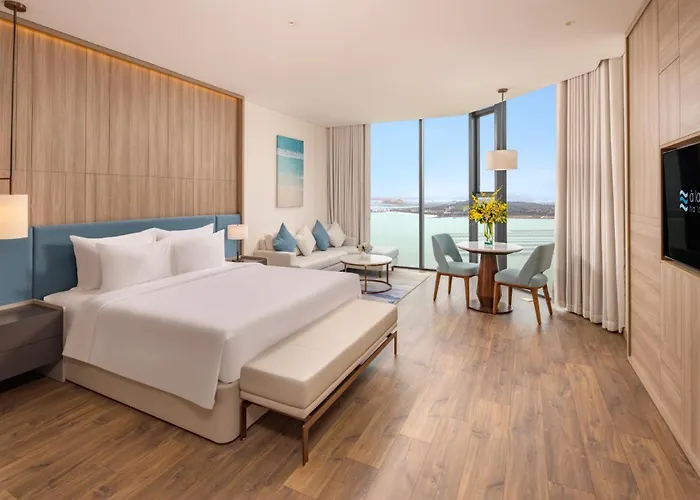 The 5-star Khach San A Lacarte Ha Long Bay, Ngay Mat Bien, Mien Phi Be Boi hotel is a great place in a beach area of Ha Long, which stands 3 miles from the huge Hang Dau Go Cave. The hotel, located around a 25-minute walk from Cai Dam Market, boasts an indoor swimming pool along with a Jacuzzi bath and a hot tub.